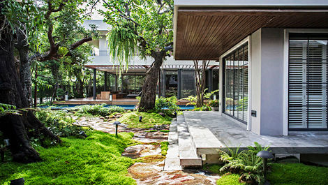 รวมถึงการวางต้นไม้และออกแบบสวนน้ำที่เรียบง่ายกับการดูแลรักษา โดยต้นไม้และสวนถูกกำหนดจากมุมมองจากทั้งภายนอกและภายใน รวมถึงเป็นตัวสร้างปฏิสัมพันธ์และความต่อเนื่องของสเปซธรรมขาติจากด้านล่าง สู่ด้านบนกับอนาคตที่สดชื่ของธรรมชาติ